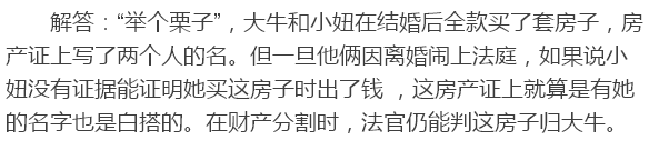 咱通俗點(diǎn)說就是,結(jié)婚前他買了房,房產(chǎn)證上寫的是他一個(gè)人的名字。結(jié)婚后,他和她一起生活,賺的錢擱一起吃吃喝喝用用加還貸。如果有一天,倆人掰了,這房子咋分,倆人可以自己商量。
